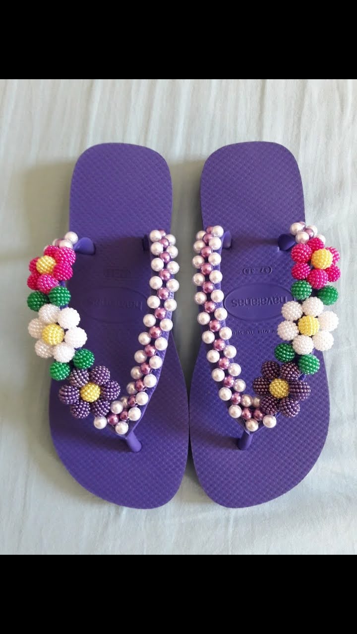 Chinelo havaianas bordado – Flores (Rosa, branca e roxa)