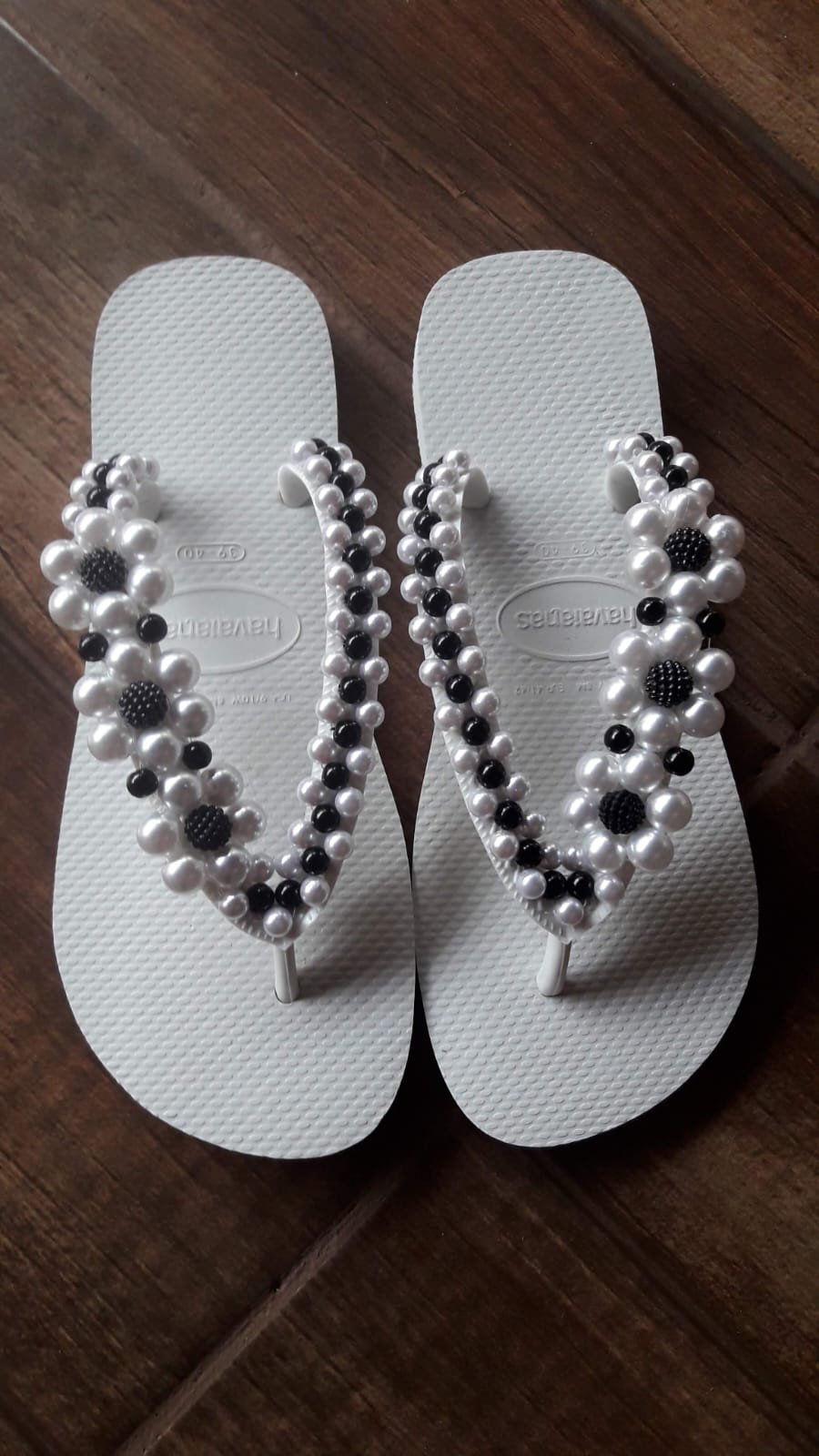 Chinelo havaianas bordado – Flores brancas