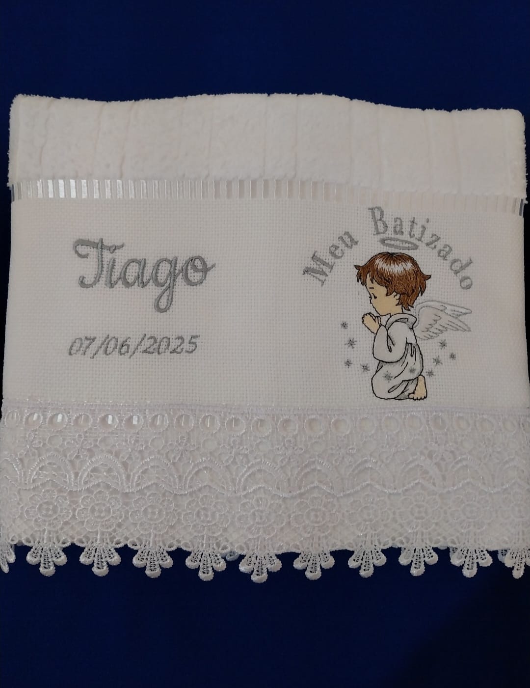 Toalhinha Meu Batizado – Anjinho (Prata)