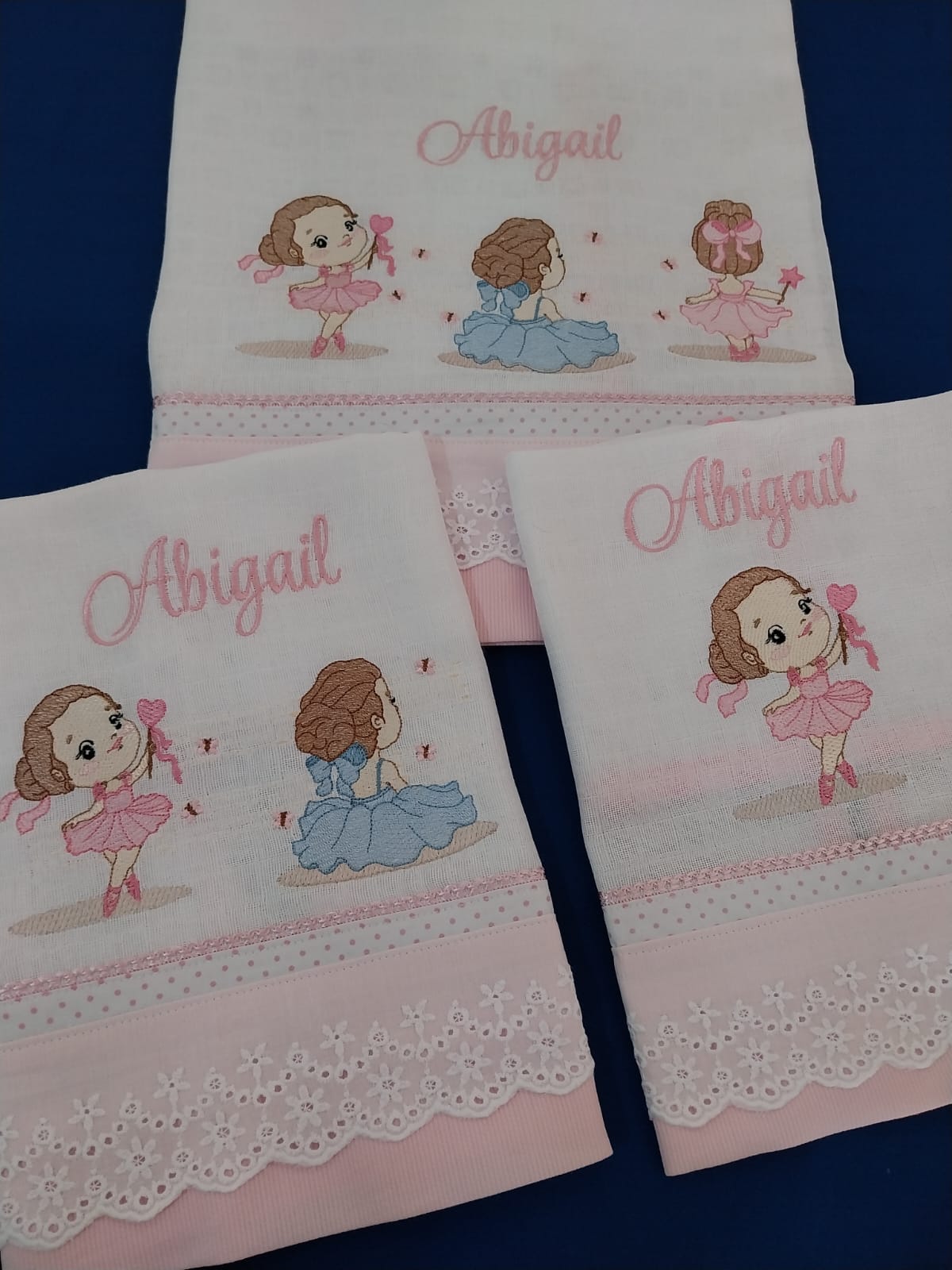 Kit de fralda bordada e personalizada – Bailarinas fadas
