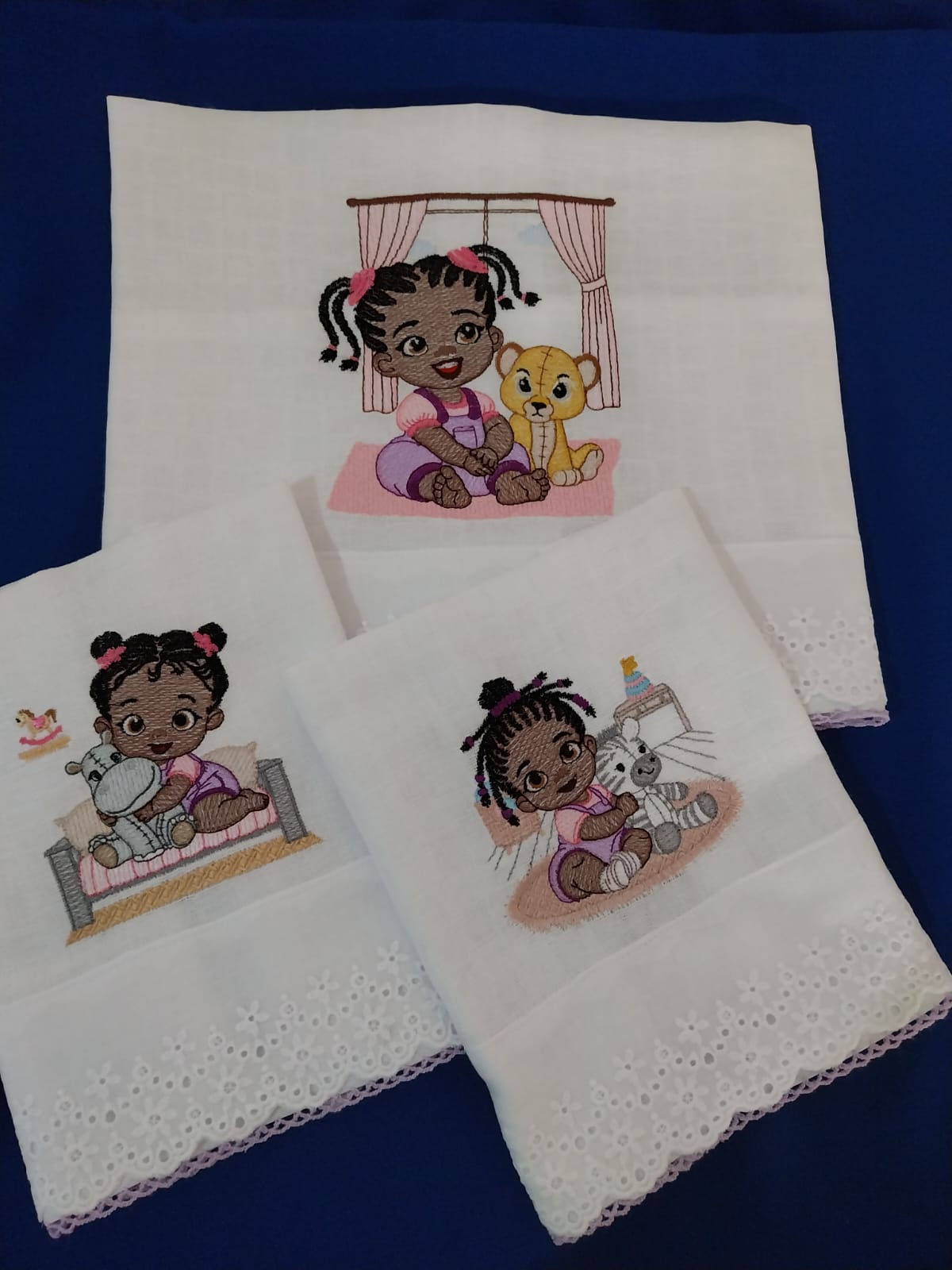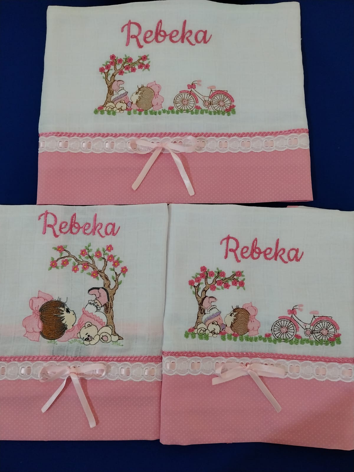 Kit de fralda bordada e personalizada – Menininha no jardim