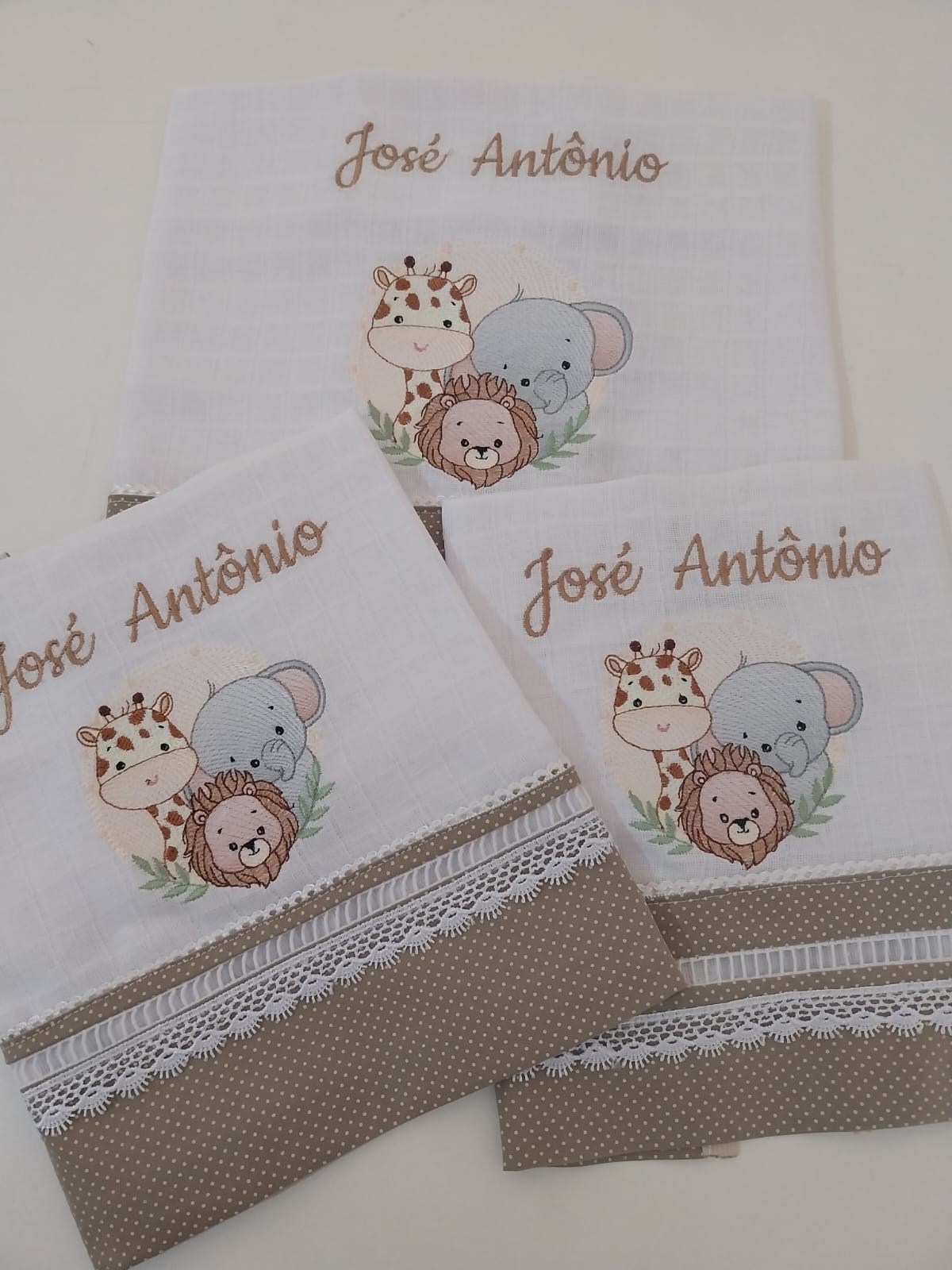 Kit de fralda bordada e personalizada – Safari aconchego
