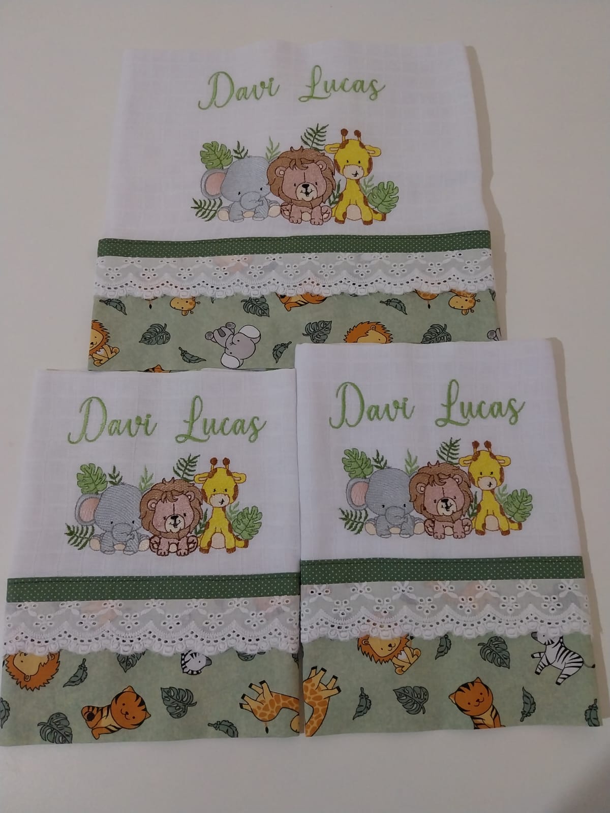 Kit de fralda bordada e personalizada – Safari amoroso