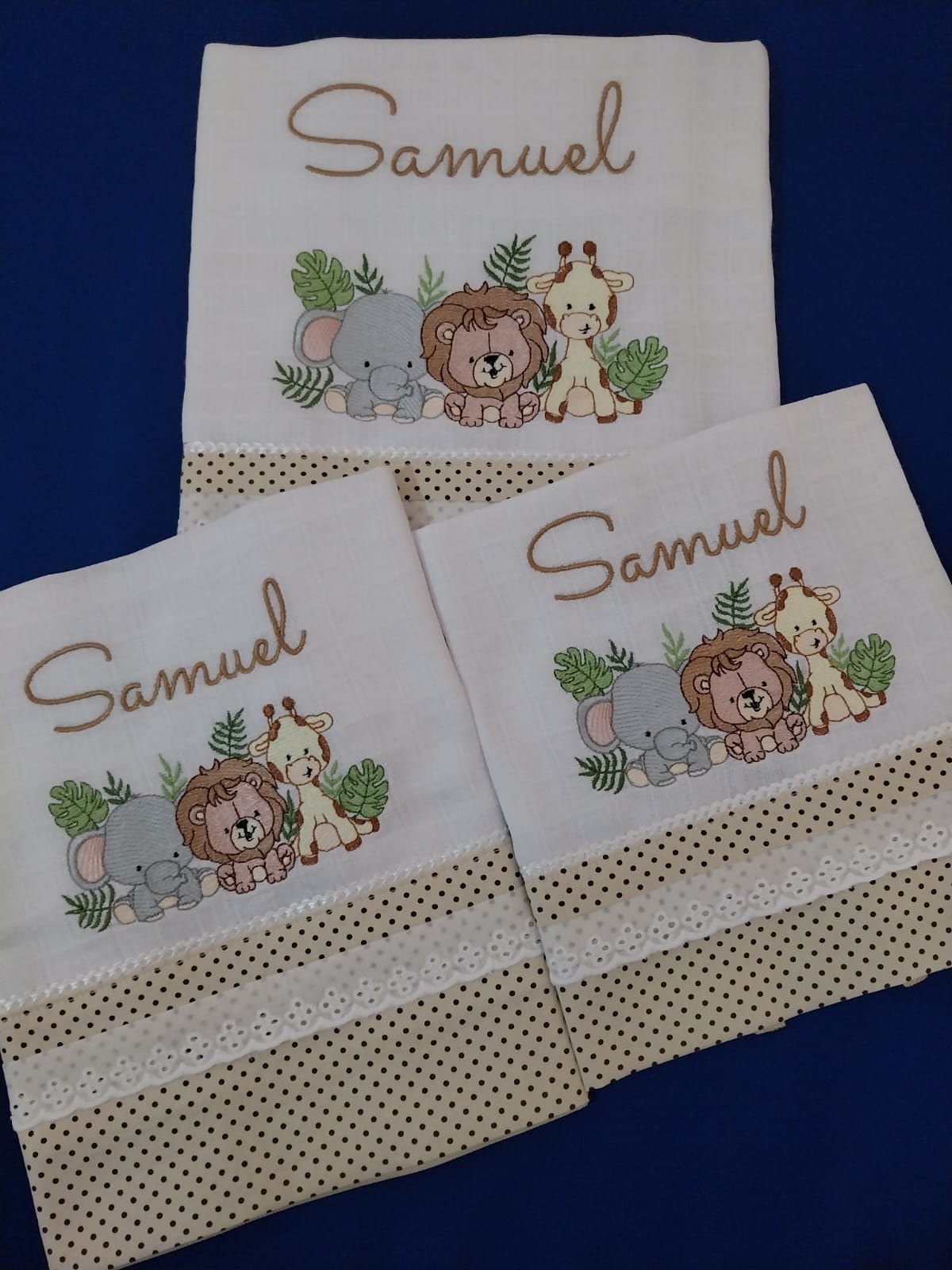 Kit de fralda bordada e personalizada – Safari clássico