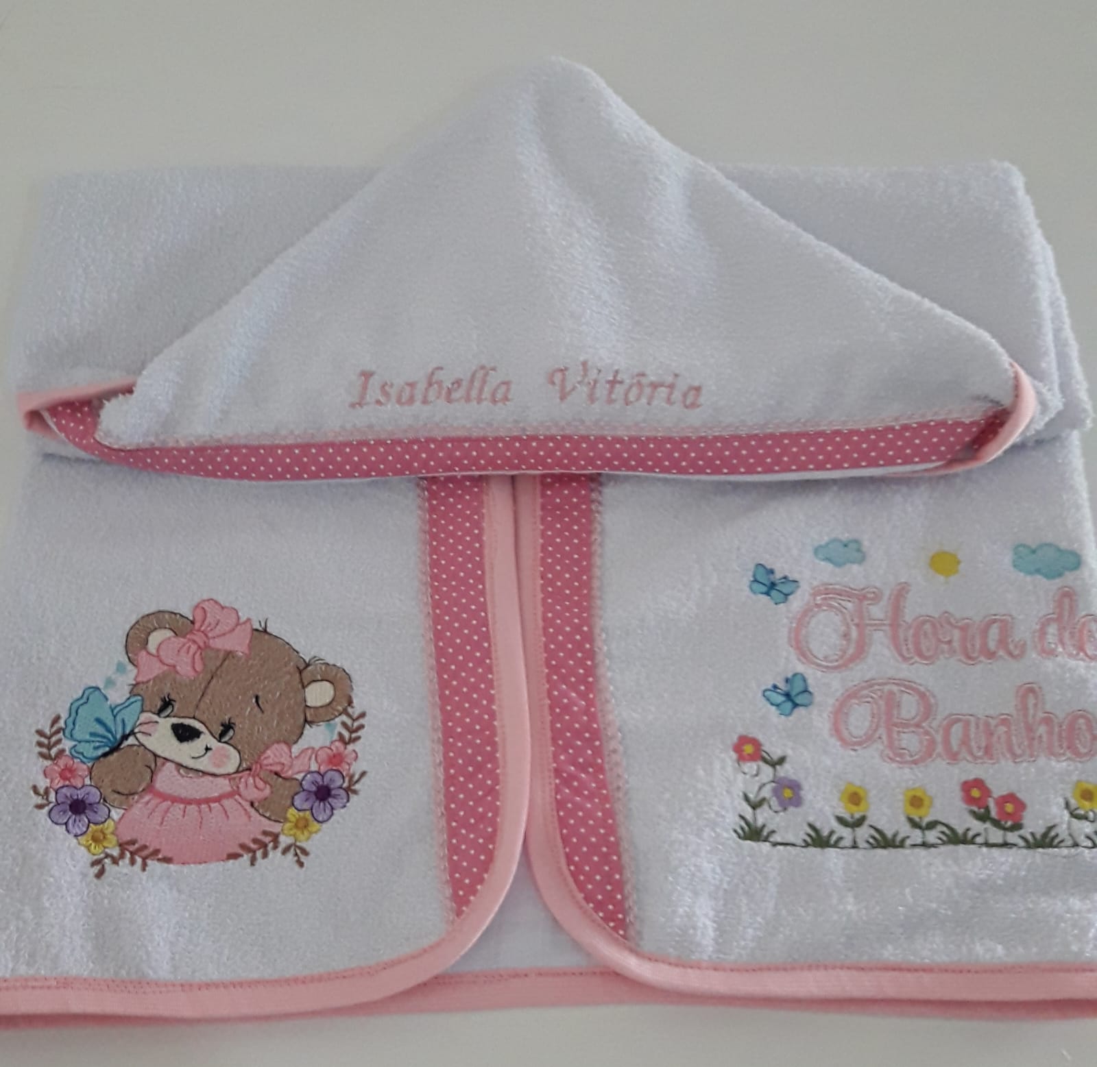 Toalha de banho com capuz – Ursinha (rosa)