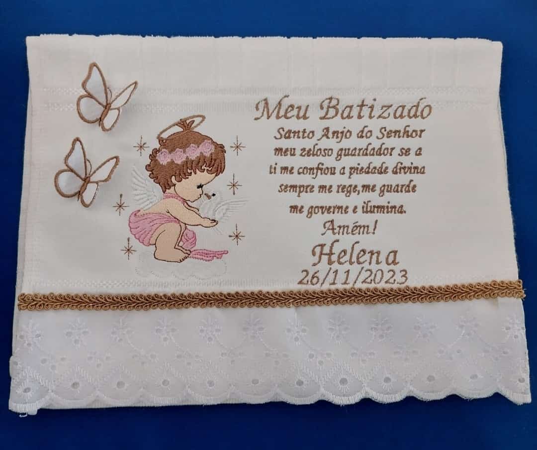 Toalhinha Anjinho e Oração (Rosa e Dourado)